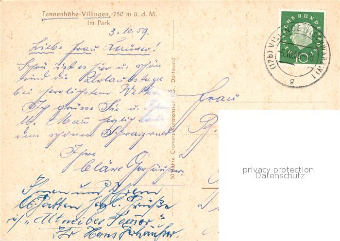 72949597 alte Postkarte Villingen-Schwenningen Tannenhoehe Park postalisch gelaufen Erhaltung siehe scans [NatalD47] KatCode: 11110008326074