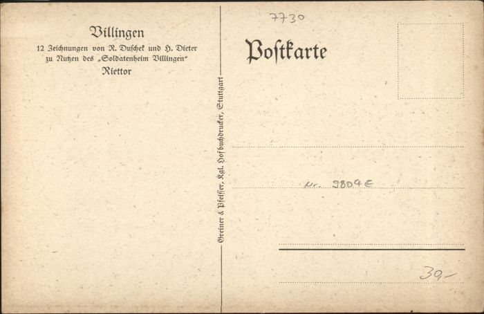 30726033 Villingen-Schwenningen Villingen Kuenstler H Dieter postalisch nicht gelaufen KatCode: 11110008326074