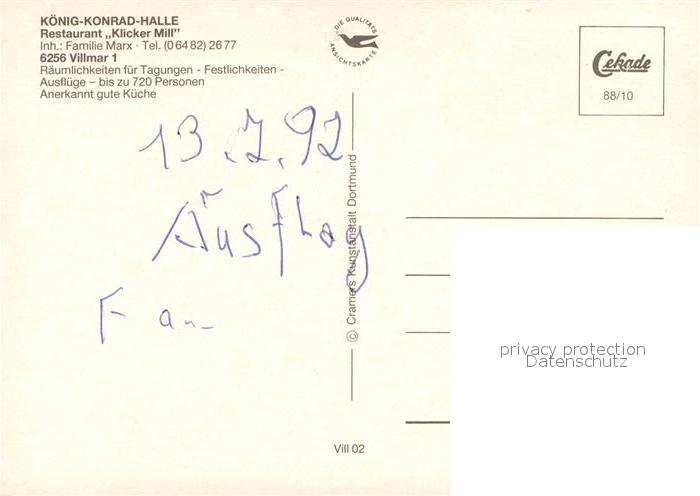 73207192 Villmar Restaurant Klicker Mill Dom postalisch nicht gelaufen Erhaltung siehe scans [KathaD81] KatCode: 11110006533015
