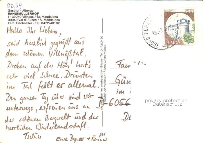 old postcard Villnoess Gasthaus Hotel Ranuimuellerhof postalisch gelaufen Erhaltung siehe scans [LiesaD40]