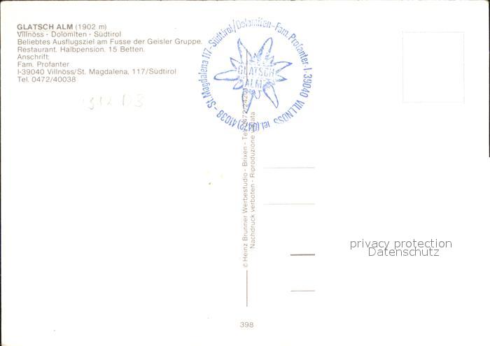 Villnoess Glatsch Alm postalisch nicht gelaufen Erhaltung siehe scans