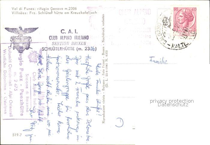 old postcard Villnoess Schlueterhuette Kreuzkofeljoch postalisch gelaufen Erhaltung siehe scans