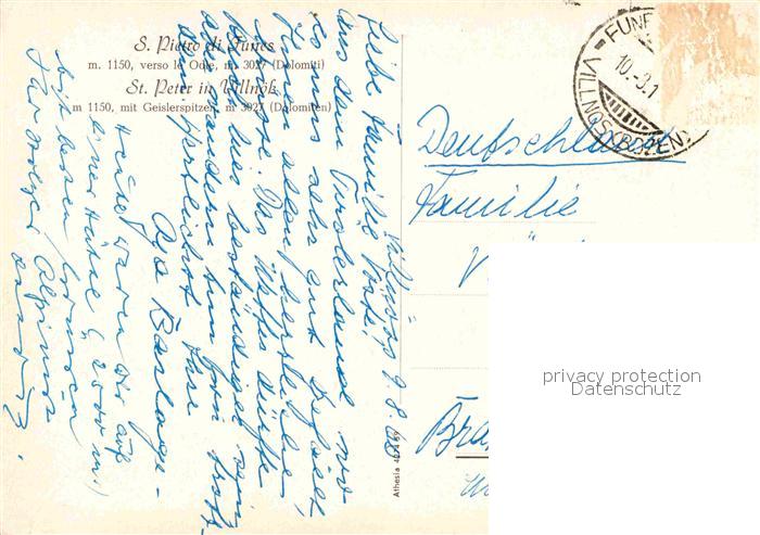 old postcard Villnoess St. Peter mit Geislerspitze postalisch gelaufen Erhaltung siehe scans [LiesaD40]