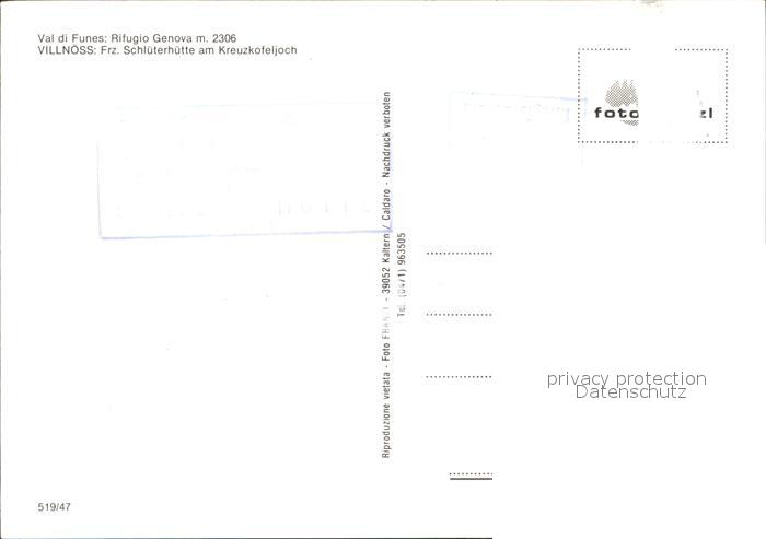 Villnoess Val di Funes Rifugio Genova Schlueterhuette am Kreuzkofeljoch Dolomiten postalisch nicht gelaufen Erhaltung siehe scans