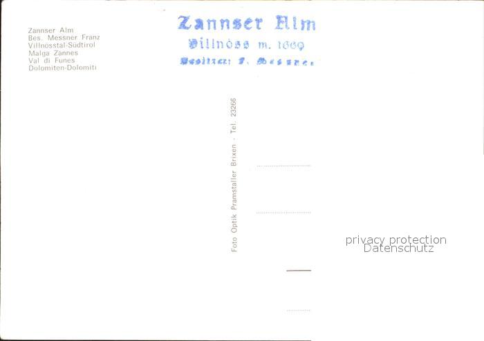 Villnoess Zannser Alm Dolomiten postalisch nicht gelaufen Erhaltung siehe scans [KathaD79]