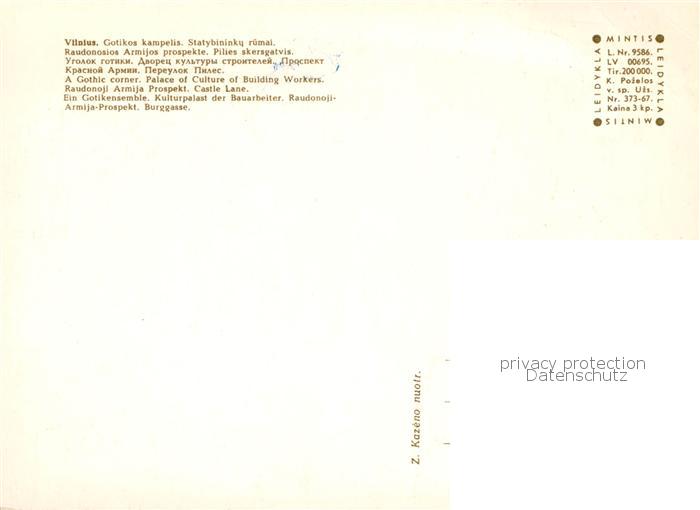 Vilnius Gothikensemble Kulturpalast der Bauarbeiter Raudonoji Armija Prospekt Burggasse postalisch nicht gelaufen Erhaltung siehe scans [WerneD78]