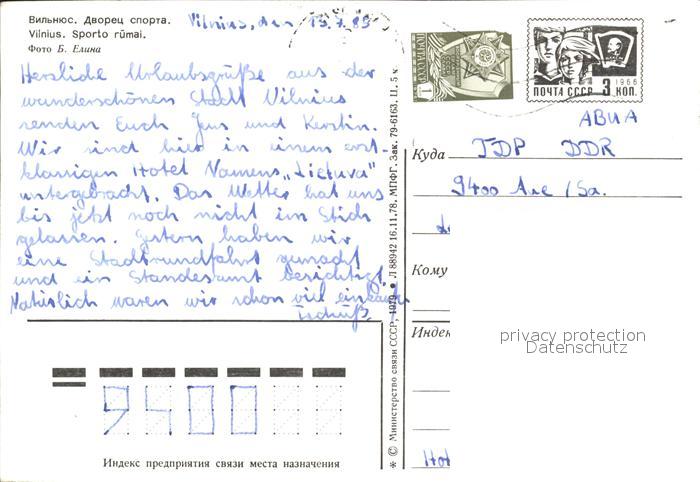 old postcard Vilnius Sporto rumai postalisch gelaufen Erhaltung siehe scans