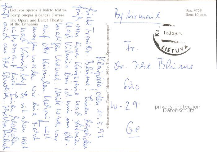 old postcard Vilnius The Opera and Ballet Theatre of the Lithuania postalisch gelaufen Erhaltung siehe scans