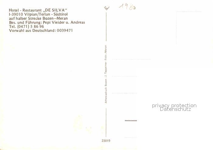 Vilpian Suedtirol Hotel Restaurant De Silva Gastraum Terrasse Swimmingpool postalisch nicht gelaufen Erhaltung siehe scans [WerneD78]
