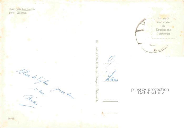 74157554 alte Postkarte Vils Reutte Tirol AT Kirche Fluss Dorf Berglandschaft Tannen Wiesen Zwiebelturm postalisch gelaufen Erhaltung siehe scans [Karloger] KatCode: 11390331070828
