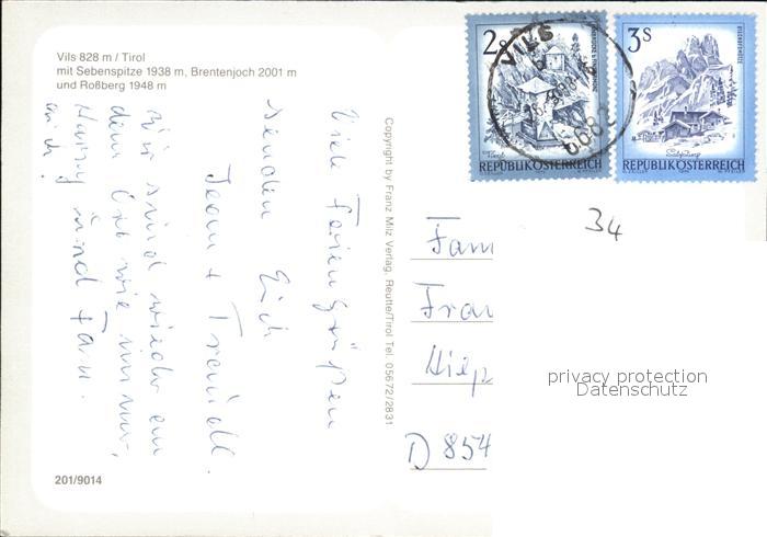 72567138 alte Postkarte Vils Tirol mit Sebenspitze Brentenjoch Rossberg postalisch gelaufen Erhaltung siehe scans [LiesaD40] KatCode: 11390