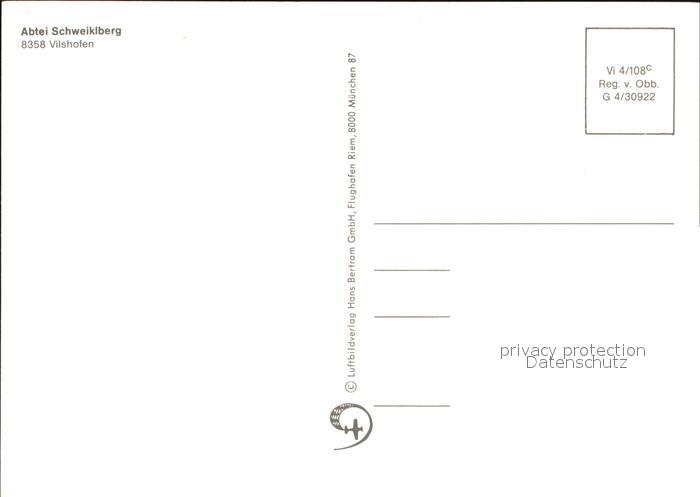 72580383 Vilshofen Donau Abtei Schweiklberg Luftaufnahme postalisch nicht gelaufen Erhaltung siehe scans [KathaD79] KatCode: 11110009275154