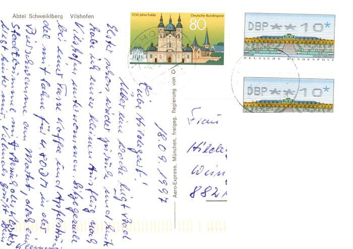 73884384 alte Postkarte Vilshofen Donau Abtei Schweiklberg postalisch gelaufen Fliegeraufnahme Erhaltung siehe scans [FriedD77] KatCode: 11110009275154