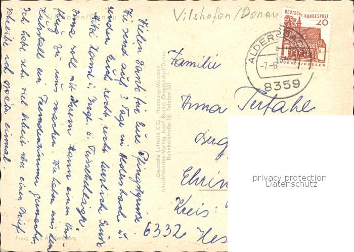 72504275 alte Postkarte Vilshofen Donau Fliegeraufnahme postalisch gelaufen Erhaltung siehe scans KatCode: 11110009275154