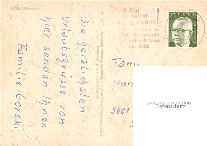 72833611 alte Postkarte Vilshofen Donau Fliegeraufnahme postalisch gelaufen Erhaltung siehe scans [FriedD77] KatCode: 11110009275154