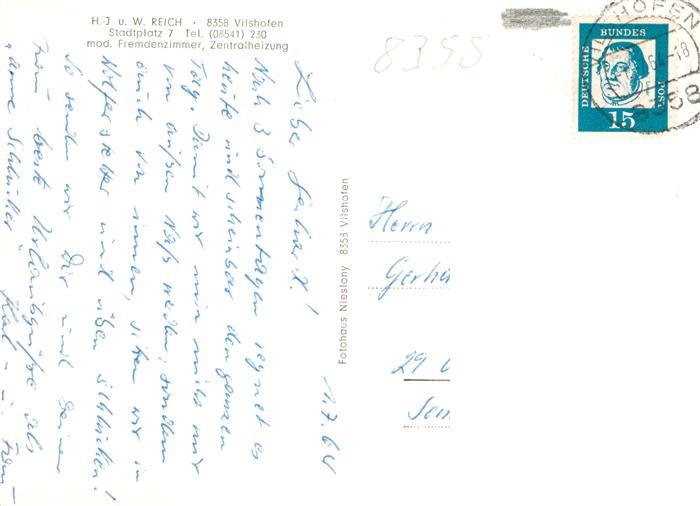 73878653 alte Postkarte Vilshofen Donau Gasthof Wolferstetter Braeu Buergerstuben Braeustuebl Zirbelstube Doppelzimmer postalisch gelaufen Erhaltung siehe scans [FriedD77] KatCode: 11110009275154
