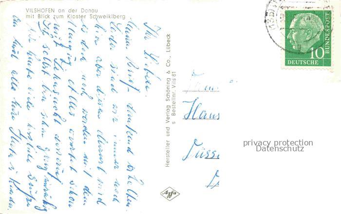 74128585 alte Postkarte Vilshofen Donau mit Blick zum Kloster Schweiklberg postalisch gelaufen Erhaltung siehe scans [WerneD78] KatCode: 11110009275154