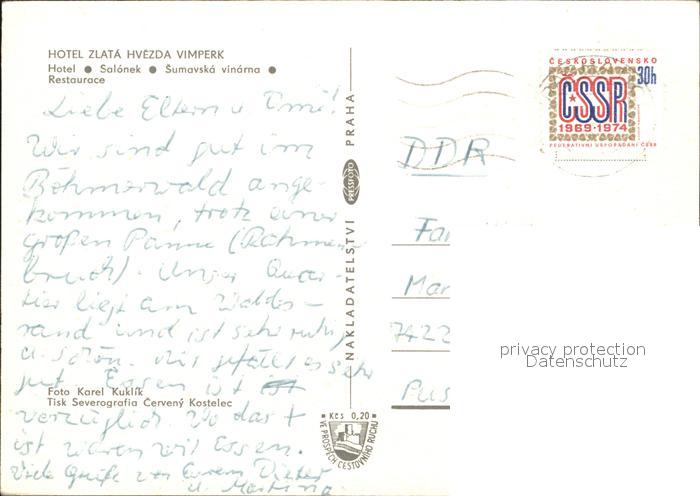 old postcard Vimperk Hotel Zlatà Hvèzda postalisch gelaufen Erhaltung siehe scans