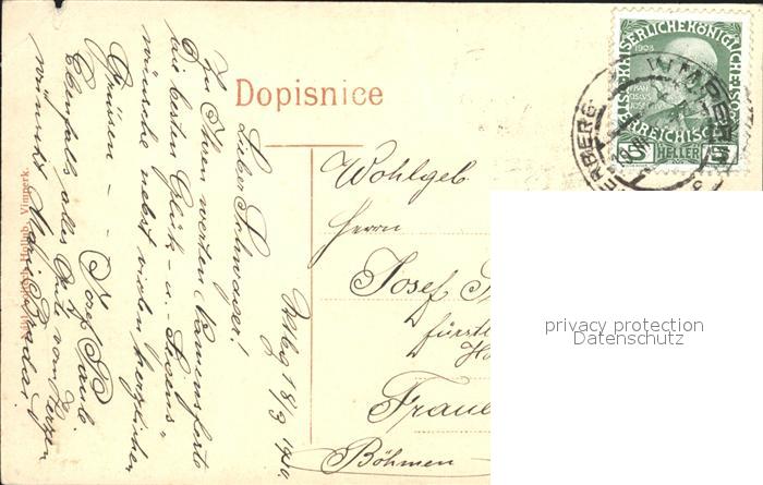 32204499 old postcard Vimperk Narodni dum postalisch gelaufen Erhaltung siehe scans KatCode: 11520