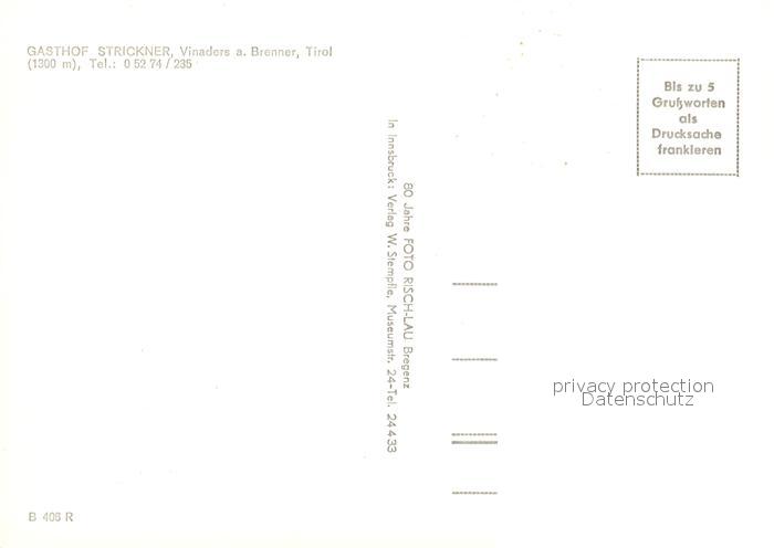 13218740 Vinaders Brenner Gasthaus Strickner postalisch nicht gelaufen Erhaltung siehe scans [LiesaD40] KatCode: 11390331070832