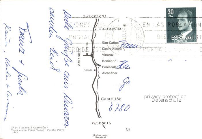 old postcard Vinaroz Fliegeraufnahme Plaza Toros postalisch gelaufen Erhaltung siehe scans [LiesaD40]