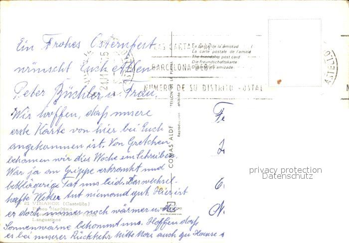 old postcard Vinaroz Hafen Langusten Plaza Toros postalisch gelaufen Erhaltung siehe scans
