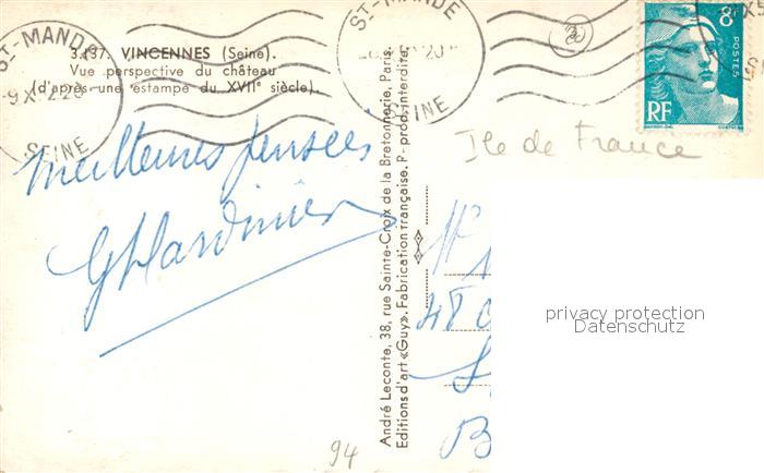 13487804 Vincennes Vue perspective du Chateau d_après une estampe du XVIIe siècle Künstlerkarte KatCode 11170094294080