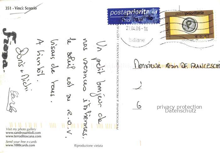 74006111 old postcard Vinci Toscana IT Panorama postalisch gelaufen Erhaltung siehe scans [FriedD77] KatCode: 11240