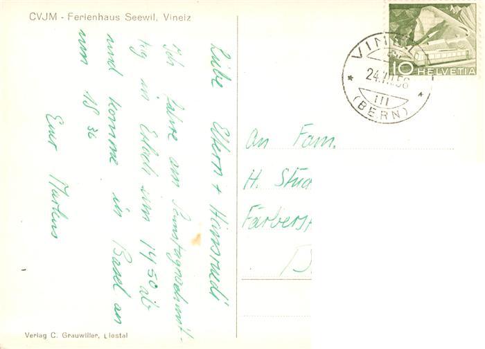 13971151 alte Postkarte Vinelz BE Basler CVJM-Ferienhaus Seewil am Bielersee postalisch gelaufen Erhaltung siehe scans [FriedD77] KatCode: 11470060160138