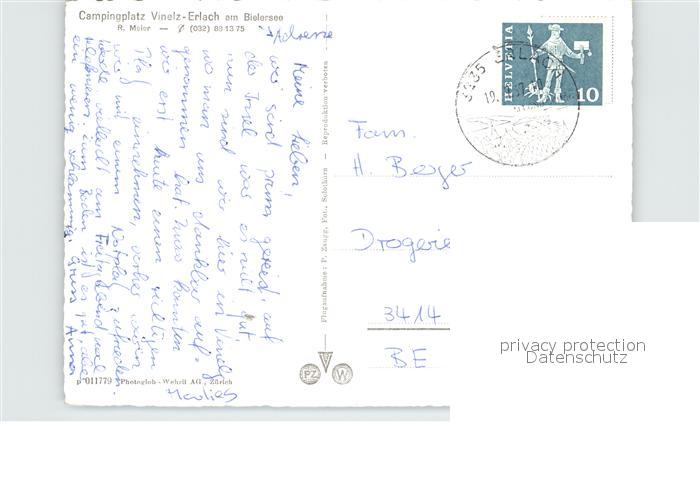12574817 alte Postkarte Vinelz Campingplatz am Bielersee Fliegeraufnahme postalisch gelaufen Erhaltung siehe scans [WerneD78] KatCode: 11470060160138