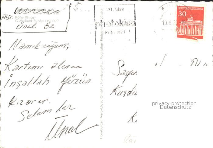 32185799 alte Postkarte Vingst Koeln Fordwohnheime VII und VIII Fliegeraufnahme postalisch gelaufen Erhaltung siehe scans KatCode: 11110005315000
