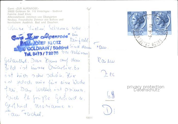 old postcard Vinschgau Val Venosta Garni Zur Alpenrose postalisch gelaufen