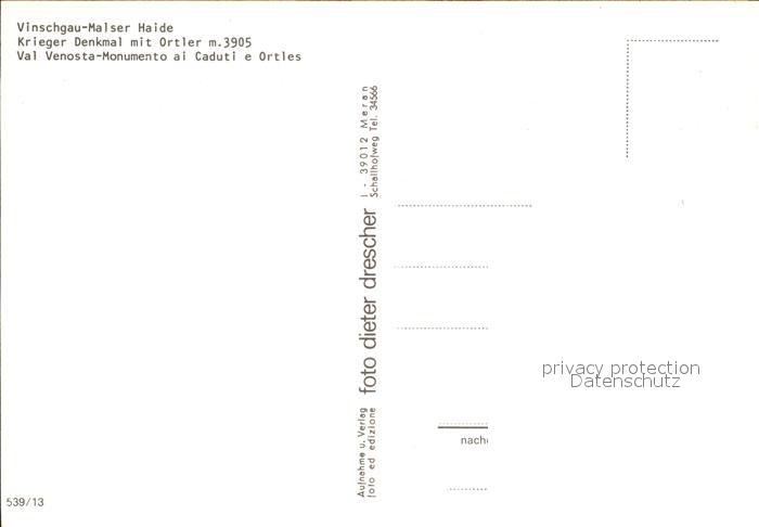 Vinschgau Val Venosta Krieger Denkmal mit Ortler postalisch nicht gelaufen Erhaltung siehe scans [AndreD76 kt113box]