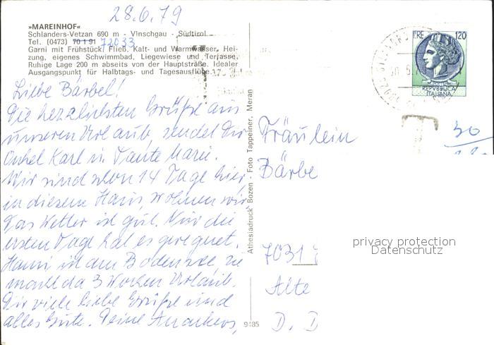 old postcard Vinschgau Val Venosta Marienhof Garni postalisch gelaufen Erhaltung siehe scans