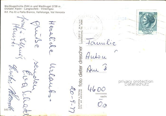 old postcard Vinschgau Val Venosta Weisskugelhuette und Weisskugel oetztaler Alpen postalisch gelaufen Erhaltung siehe scans [WerneD78 kt117box]