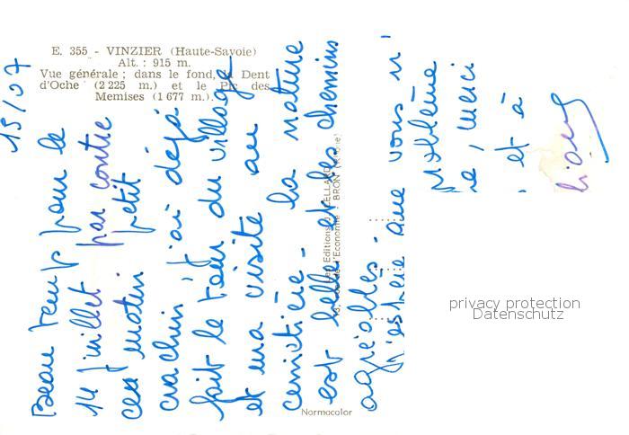 13800156 Vinzier 74 Haute-Savoie Vue Generale dans le fond la Dent d Oche et Pic des Memises postalisch nicht gelaufen Fliegeraufnahme Erhaltung siehe scans [FriedD77] Fliegeraufnahme Frie Katcode 11170074474308