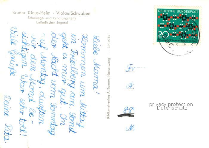72945757 alte Postkarte Violau Brueder Klaus Heim Schulungs und Erholungsheim postalisch gelaufen Erhaltung siehe scans [FriedD77] KatCode: 11110009772115