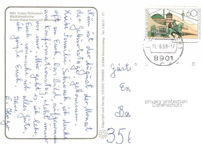 72890503 alte Postkarte Violau Wallfahrtskirche Bruder Klaus Heim mit Sternwarte postalisch gelaufen Erhaltung siehe scans [WerneD78] KatCode: 11110009772115