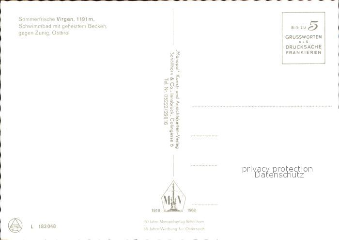 72602652 Virgen Freibad gegen Zunig postalisch nicht gelaufen Erhaltung siehe scans [LiesaD40] KatCode: 11390333070734