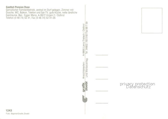 13221095 Virgen Gasthaus Pension Rose postalisch nicht gelaufen Erhaltung siehe scans [LiesaD40] KatCode: 11390333070734