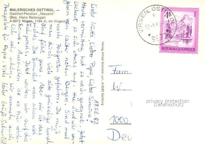 13009030 alte Postkarte Virgen Gasthof Neuwirt postalisch gelaufen Erhaltung siehe scans [NatalD47] KatCode: 11390333070734