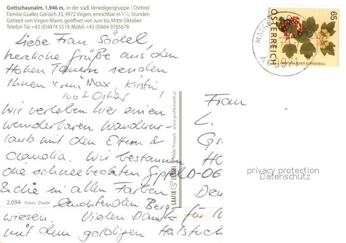 73312291 alte Postkarte Virgen Gottschaualm Venedigergruppe postalisch gelaufen Erhaltung siehe scans [FriedD77] KatCode: 11390333070734