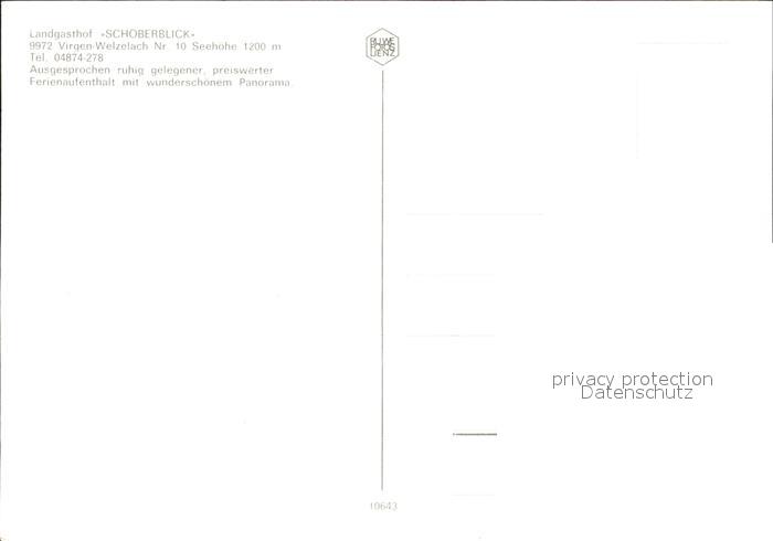 72612384 Virgen Landgasthof Schoberblick postalisch nicht gelaufen Erhaltung siehe scans [AndreD76] KatCode: 11390333070734