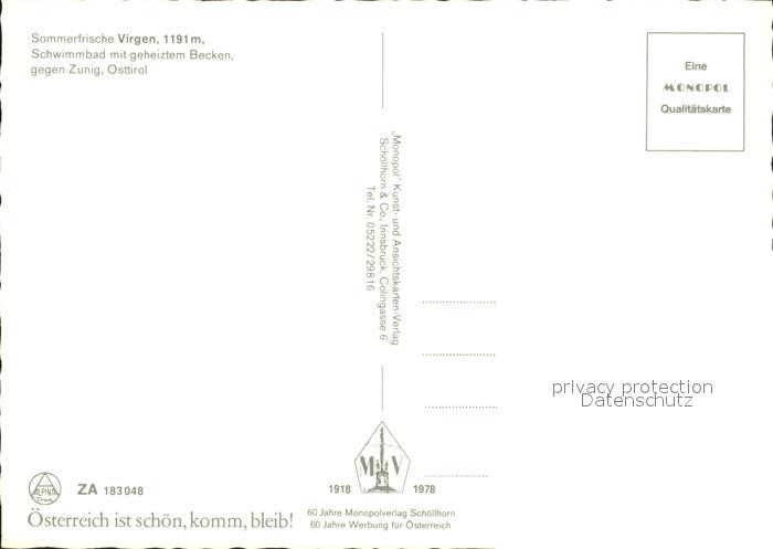 72296941 Virgen Sommerfrische Schwimmbad gegen Zunig Venedigergruppe postalisch nicht gelaufen Erhaltung siehe scans KatCode: 11390333070734