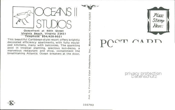 72055015 Virginia Beach Caribbean style resort Oceanfront Oceans II Studios postalisch nicht gelaufen Erhaltung siehe scans KatCode: 14140490000000