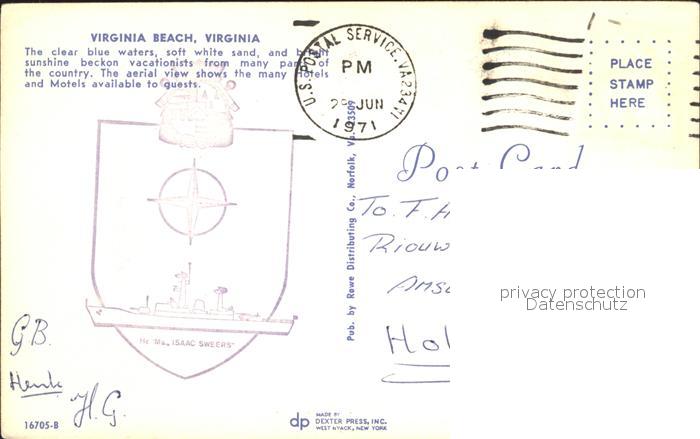 72285197 old postcard Virginia Beach Fliegeraufnahme Strand postalisch gelaufen Erhaltung siehe scans KatCode: 14140490000000