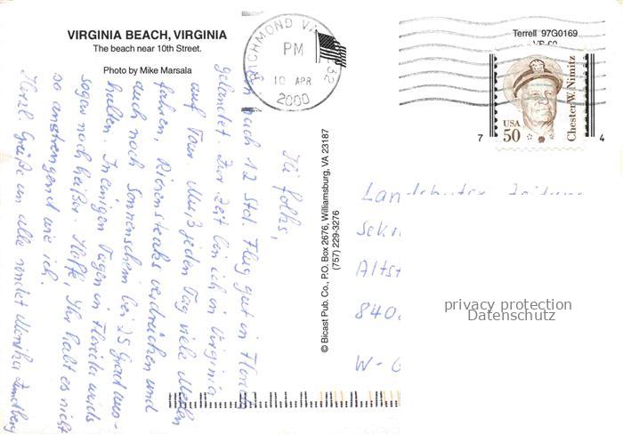 74035101 old postcard Virginia Beach Virginia USA The beach near 10th Street aerial view postalisch gelaufen Fliegeraufnahme Erhaltung siehe scans [FriedD77] KatCode: 14140490000000