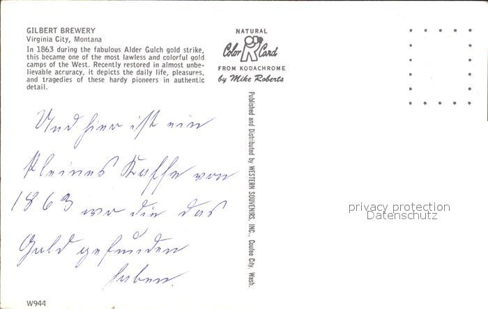 72415878 Virginia City Montana Gilbert Brewery postalisch nicht gelaufen Erhaltung siehe scans KatCode: 14140280000000