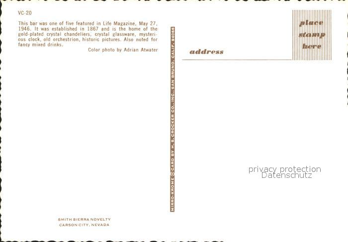 72233055 Virginia City Nevada Crystal Bar postalisch nicht gelaufen Erhaltung siehe scans KatCode: 14140300000000