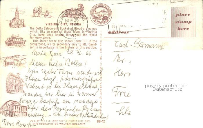 72497772 old postcard Virginia City Nevada Delta Saloon Strassenpartie postalisch gelaufen Erhaltung siehe scans KatCode: 14140300000000